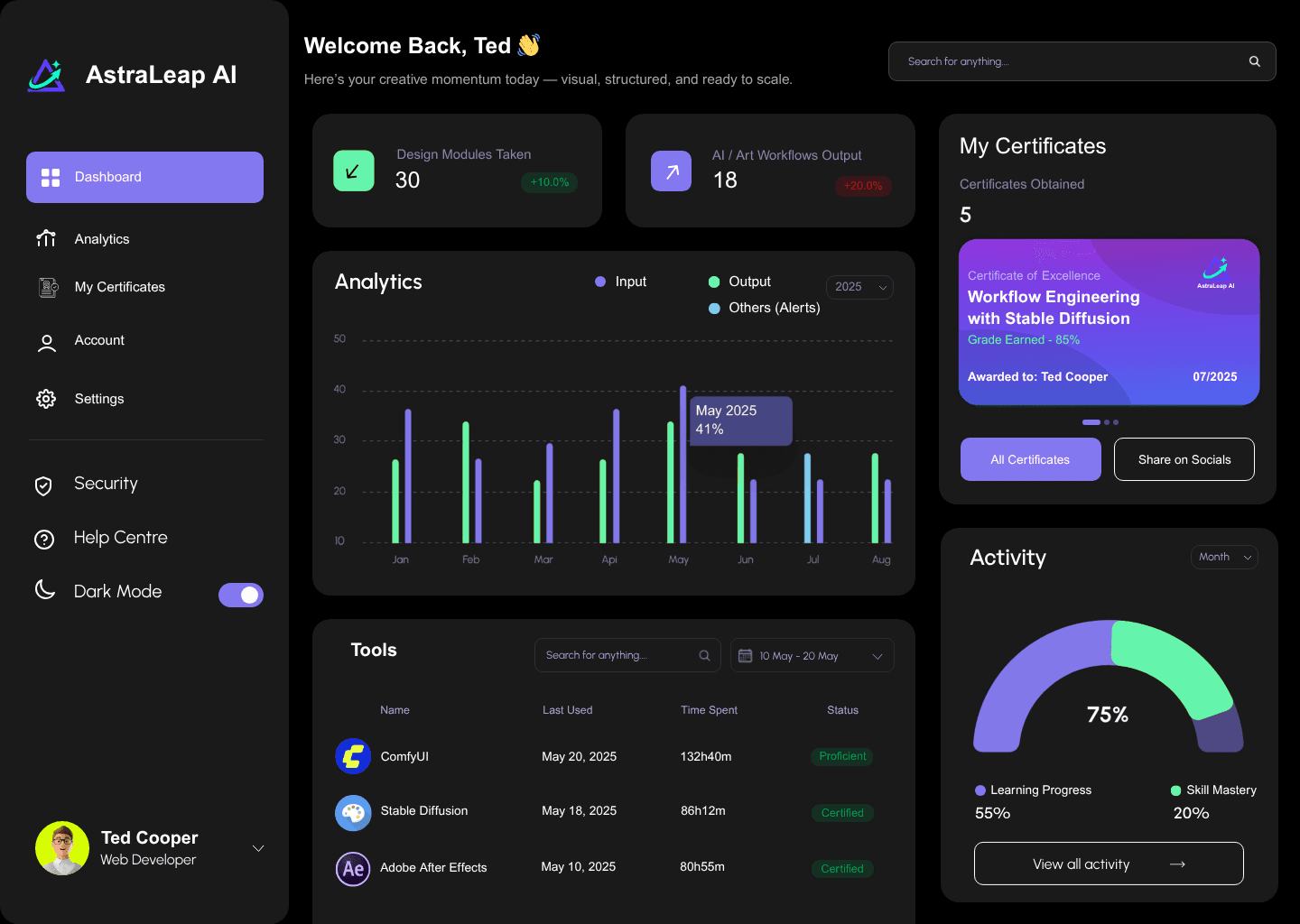 “We started AstraLeap AI because too many people are overwhelmed by AI tools, but still want to create. Our goal is to make powerful creative workflows feel accessible — structured, beautiful, and actually fun to learn.”